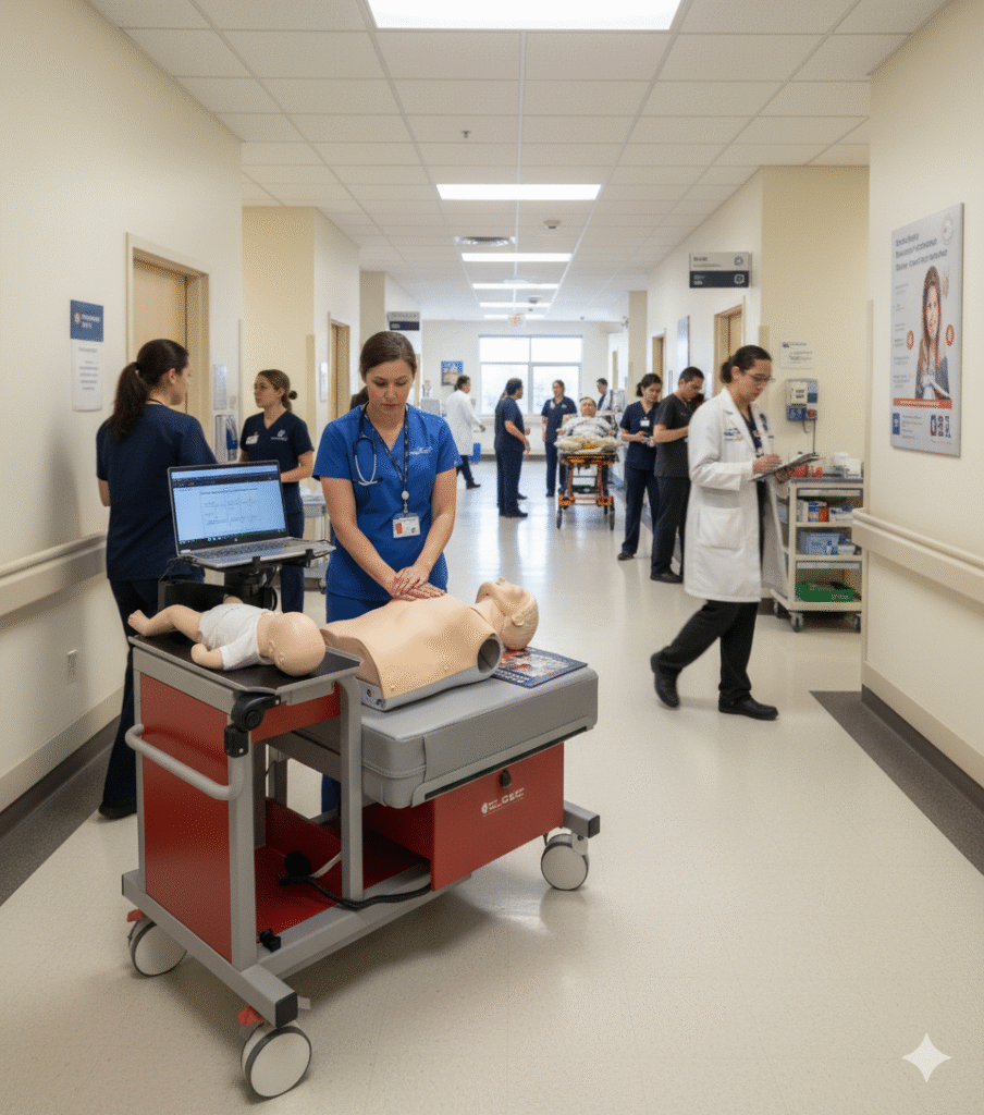Staff can complete online learning and hands-on practice at their convenience, ensuring their skills are always sharp and up to date. This flexible model makes it easy to maintain a high standard of care throughout your entire hospital.